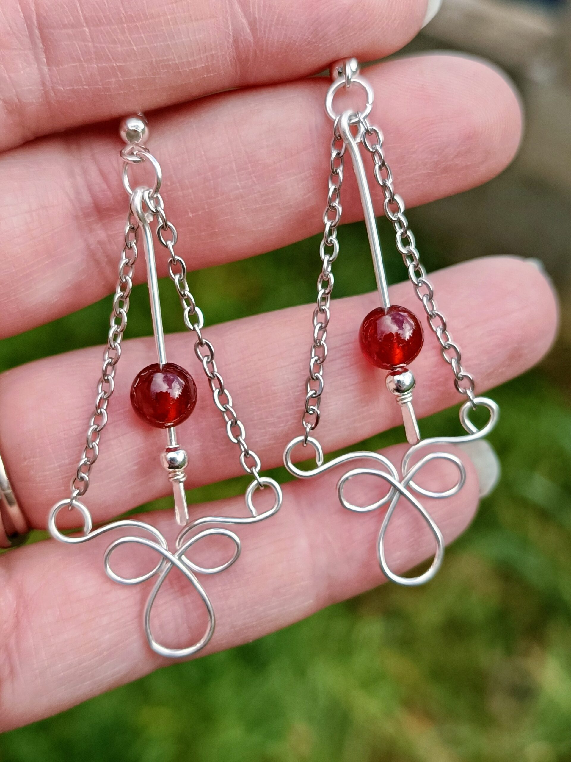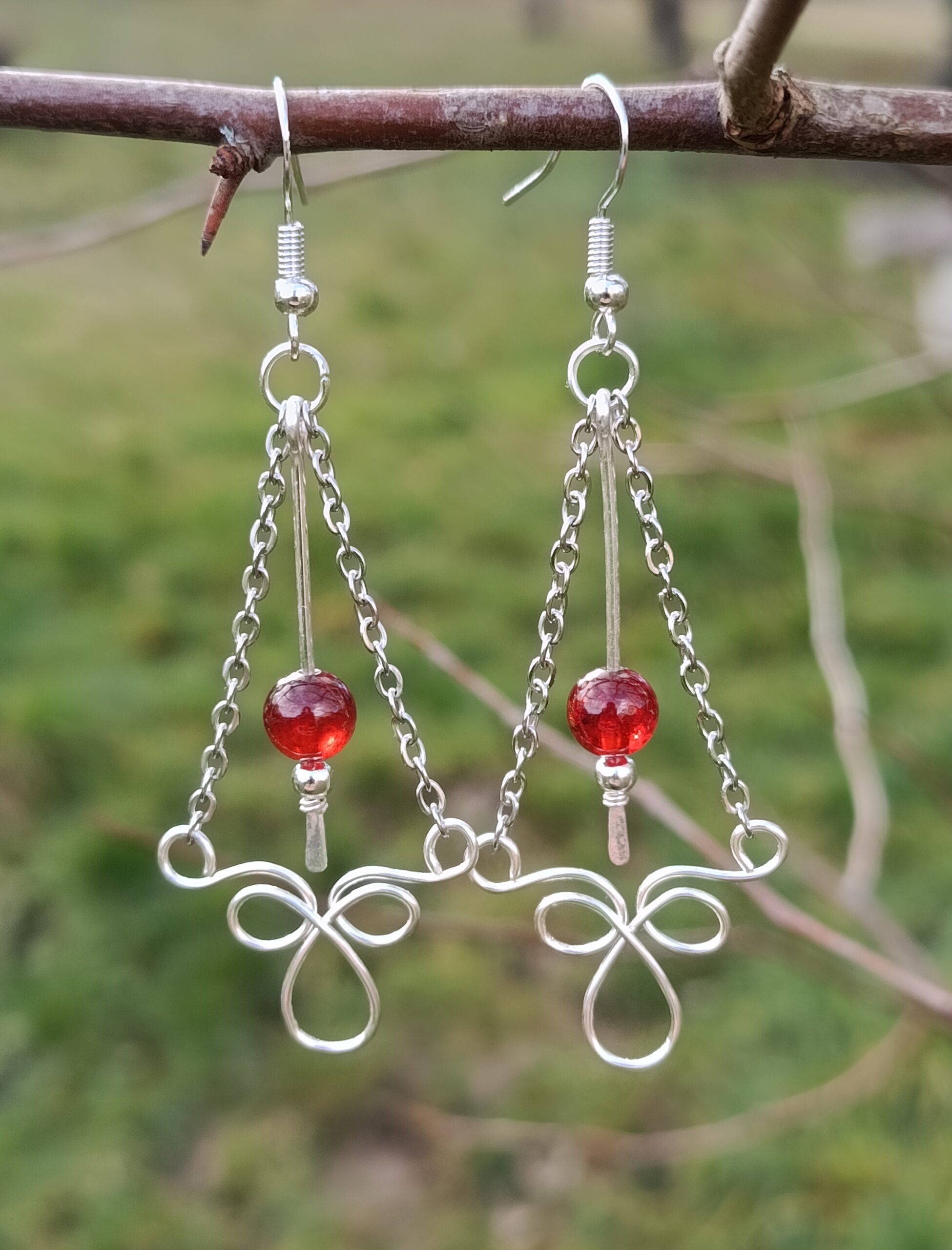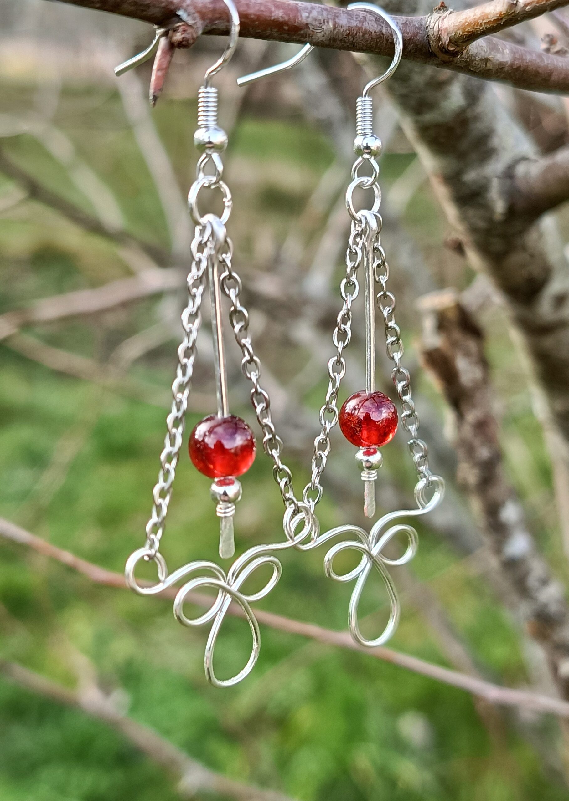 Très jolie paire de boucles d’oreilles composée de perles de grenat hessonite montées sur fil de cuivre plaqué argent.