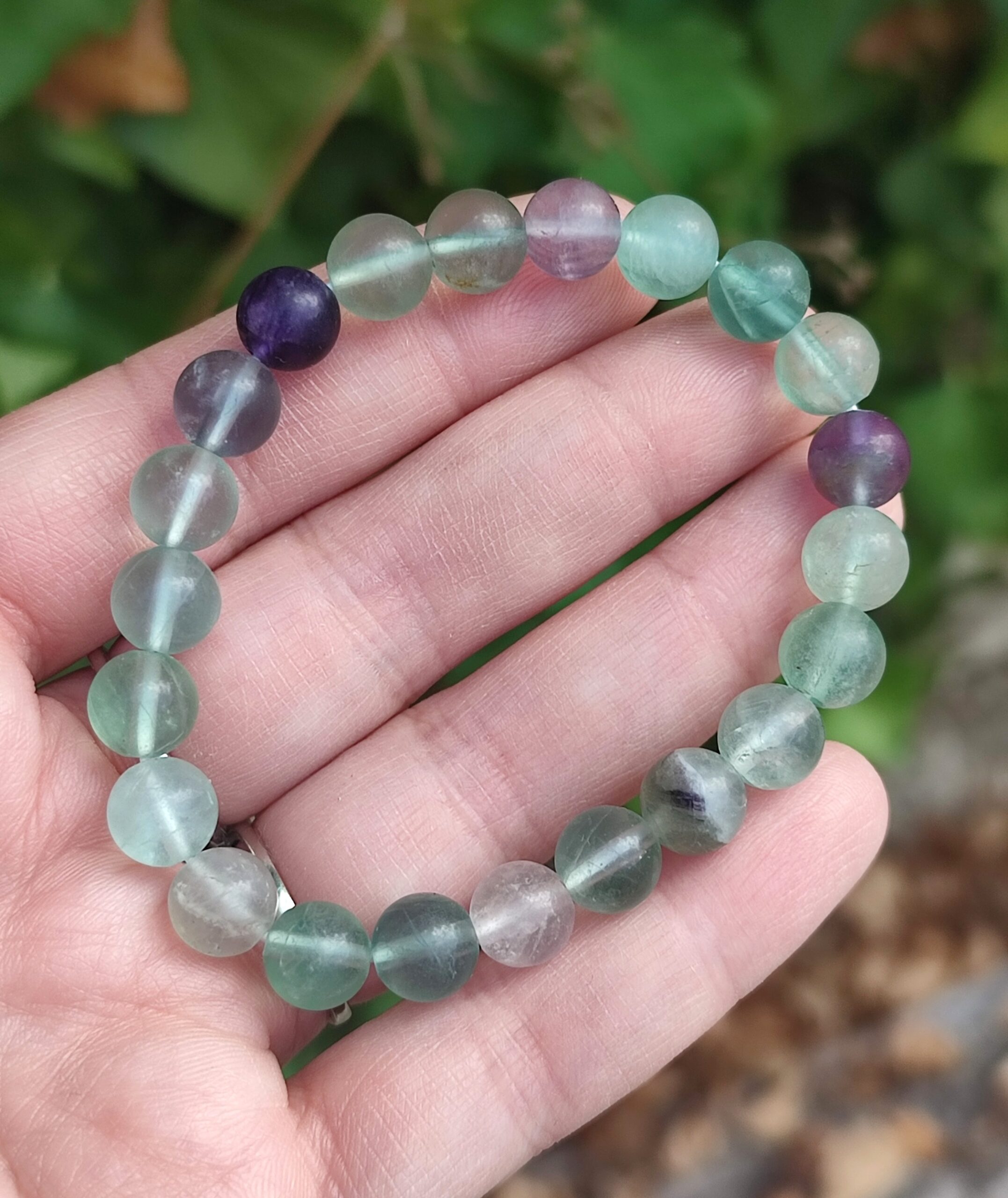 Ces jolies perles de fluorite en 8mm proviennent de Chine et possèdent des couleurs très estivales et fraiches : du vert d’eau de différentes nuances, avec quelques touches de violet divers, le tout avec une belle transparence !