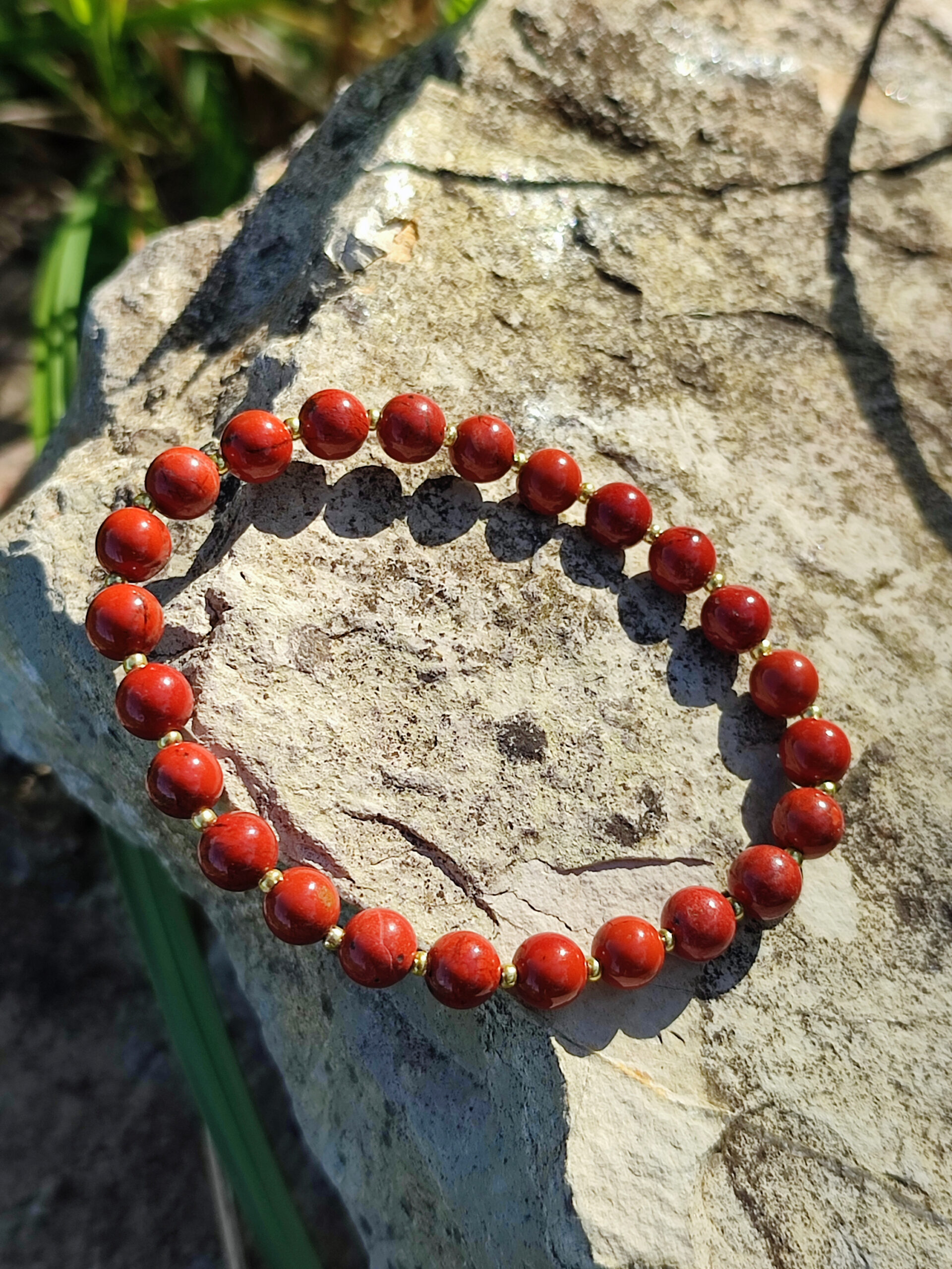 -sur le plan spirituel : pierre de stabilité et de force, le jaspe rouge apporterait de la motivation et renforcerait la confiance en soi. Il stimulerait la volonté d’agir en permettant de vivre le moment présent. Il serait parfait pour les personnes émotives et protègerait contre les mauvaises influences.
