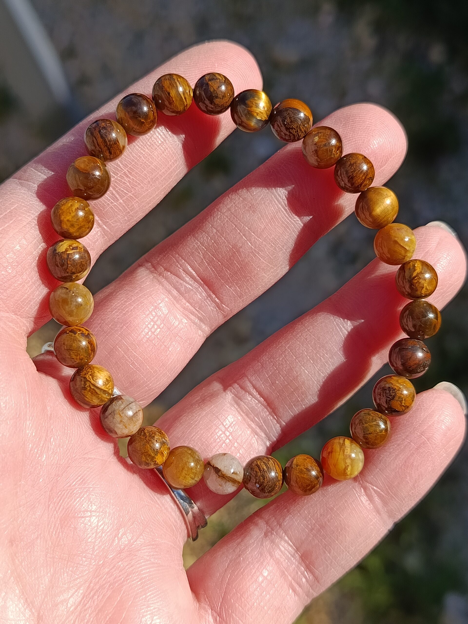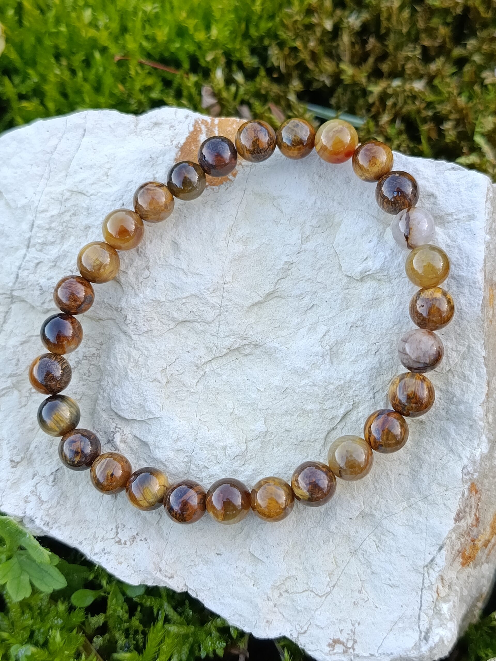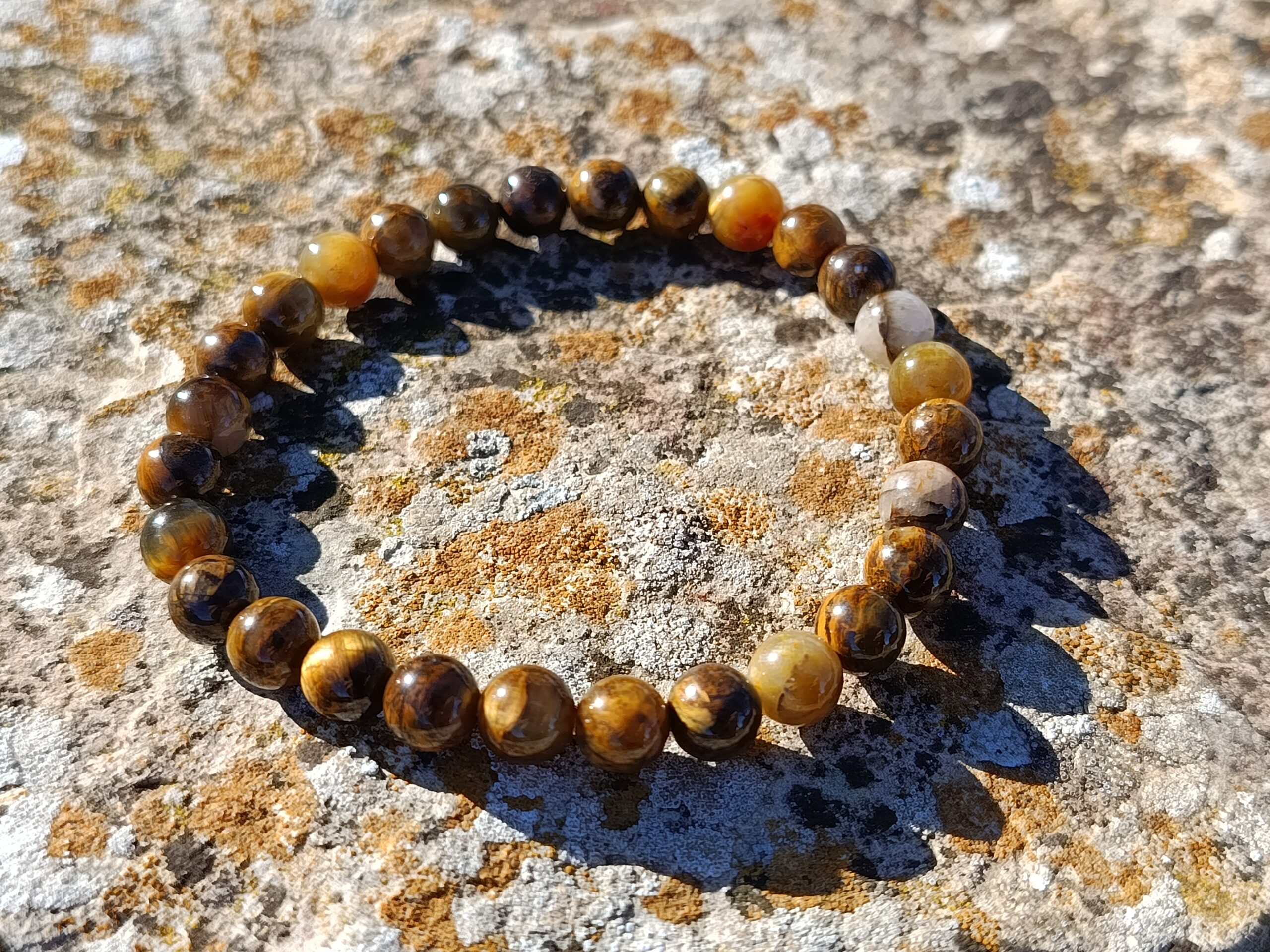 Ces magnifiques perles de nellite en 6mm possèdent les mêmes caractéristiques que leur cousin l’oeil de tigre mais avec quelques différences qui font toute sa particularité : ses reflets dorés sont plus doux et délicats offrant ainsi plus d’intensité, et l’on retrouve également plus de traces de quartz qui vient apporter plus de contraste. Chaque perle est différente l’une de l’autre, avec plus de motifs et de petits mondes à découvrir !